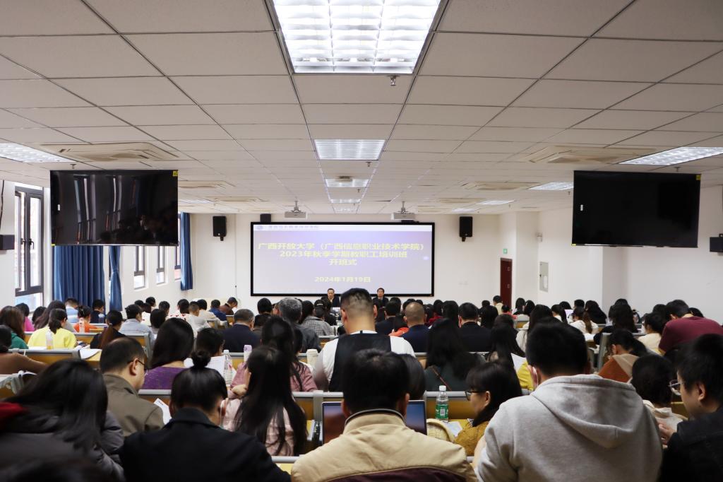 人事处 关振华报道 为进一步提升广大教师的思想政治素质和教育教学能力,促进教职工成长与发展,2024年1月19日至1月22日,学校在五象校区3号实训楼103教室举办2023年秋季学期教职工培训。学校领导班子出席培训会,广西开放大学专任教师、行政兼课教师,betvictor网页版首页