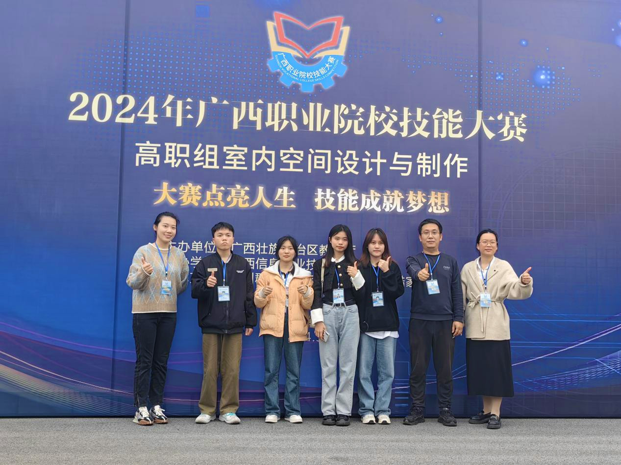 我校“室内空间设计与制作”赛项获奖指导教师与学生合影