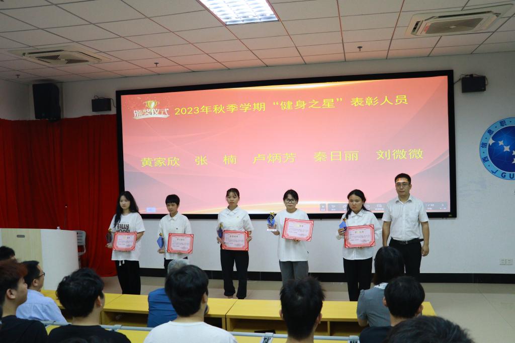 公共教学部 潘长嫔报道 为进一步贯彻落实《中共中央国务院关于加强青少年体育增强青少年体质的意见》文件精神,培养学生热爱体育、崇尚运动的健康观念,营造良好体育文化氛围,4月2日,我校在1号实训楼101教室举行2023年秋季学期校园课外阳光健康跑“健身之星”表彰大会。副院长黄河、邓明学,数字艺术学院院长冯韬、公共教学部主任韦览恩、北斗学院梁晓老师,体育教研室全体教师及各二级学院学生代表参加了表彰大会。
