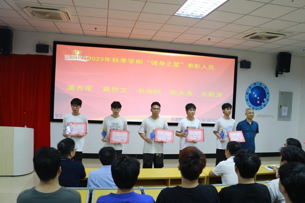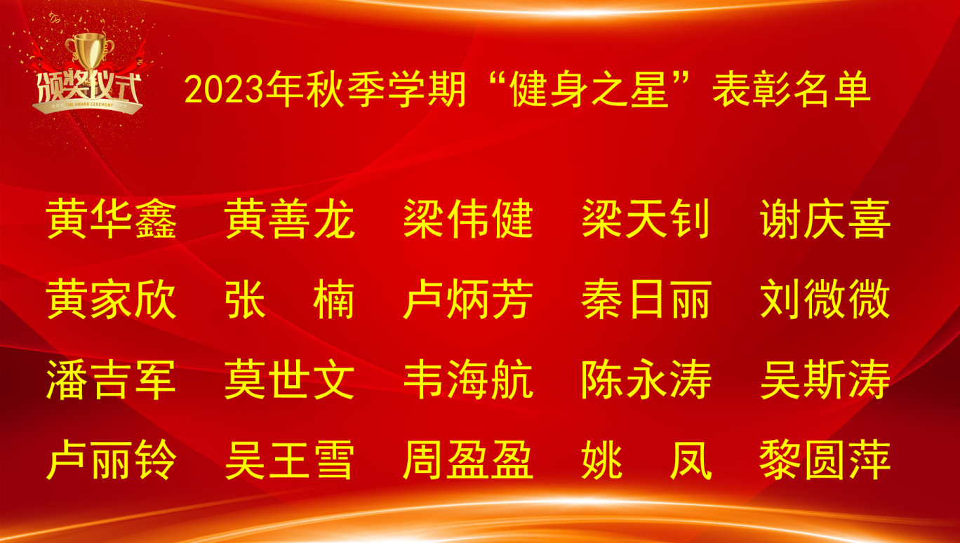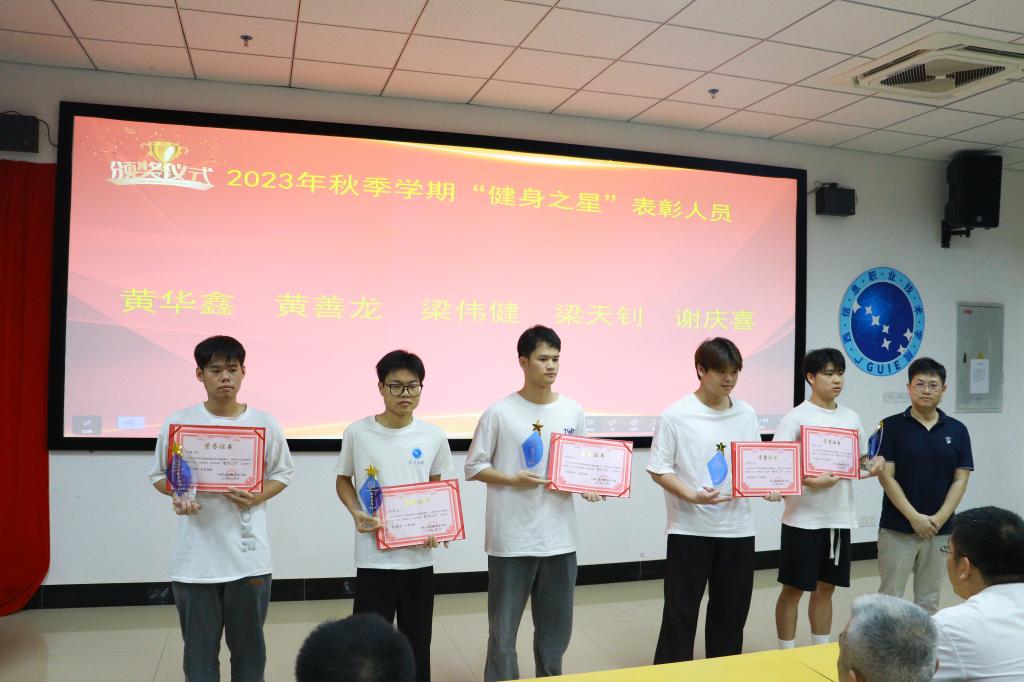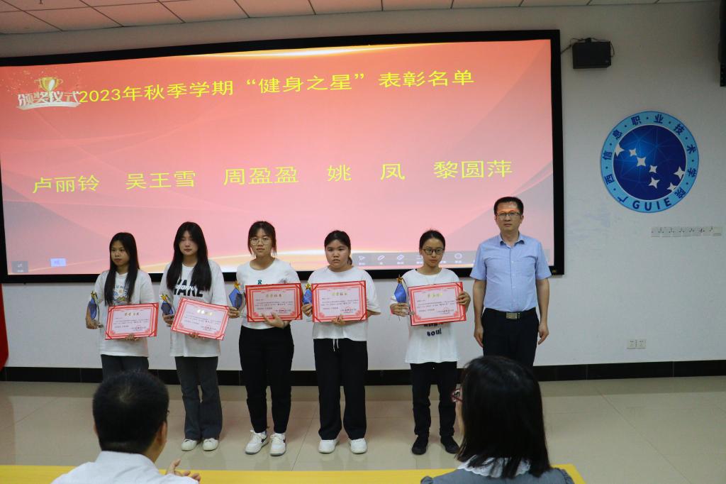 最后,出席本次大会的领导和老师为20名获得“健身之星”称号的学生颁发校级证书和奖品,并合影留念。