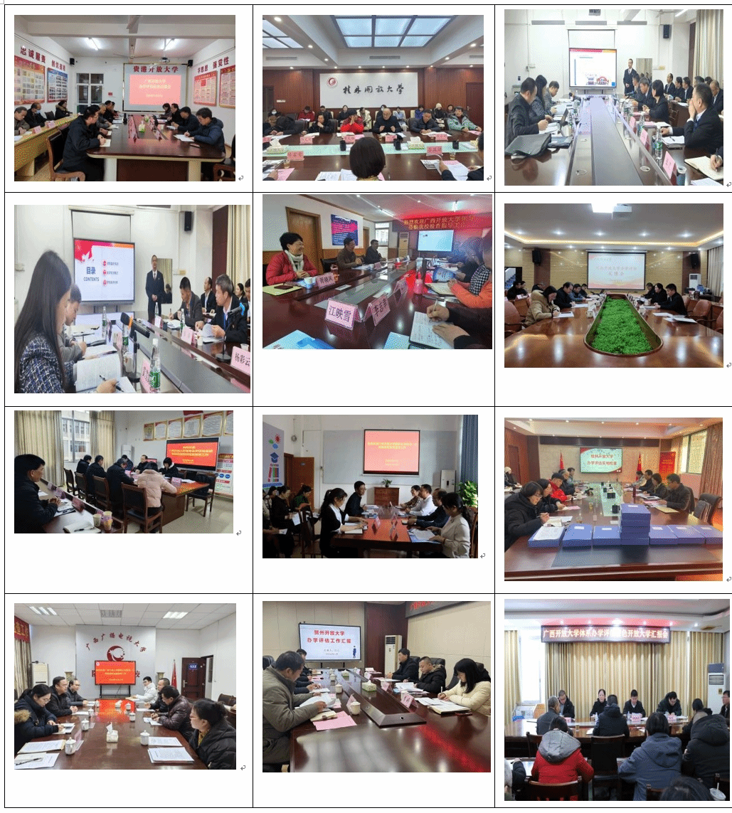 本次实地检查严格按照《广西开放大学对市开放大学及学习中心实地评估检查工作方案》要求和工作流程进行,由校领导带队到负责联系的各市开放大学开展评估实地检查。各检查组主要是听取各市开放大学负责人的自评报告、召开教师和行政人员座谈会、查看办学评估各级指标佐证材料。
