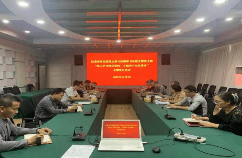 审计处 农盛霖 报道 12月2日下午,纪委审计直属党支部和后勤保卫基建直属党支部联合开展主题党日活动,就学习贯彻党的二十届四中全会精神进行交流研讨。学校纪委书记侯宗毅列席指导,纪委审计直属党支部书记伍立凌主持会议,两个党支部全体党员参加。