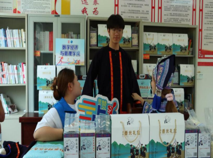 服务团充分发挥专业特长,化身“新农主播”,开展助农直播带货行动,在镜头前展示板价村生态香米,从香米的生长环境、加工流程入手,融入板价村短衣壮族文化,将香米与当地饮食传统、生活智慧相联结,让板价村的生态香米鲜活地呈现在观众面前。