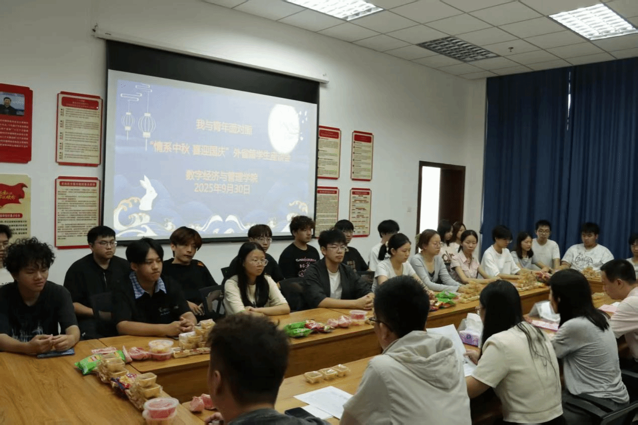 数字经济与管理学院 谢姗姗 报道 9月30日,在国庆、中秋双节来临之际,数字经济与管理学院举办外省籍2025级新生代表座谈会、走访学生宿舍等“情系中秋喜迎国庆”系列活动,为学生送上节日关怀与成长指引。