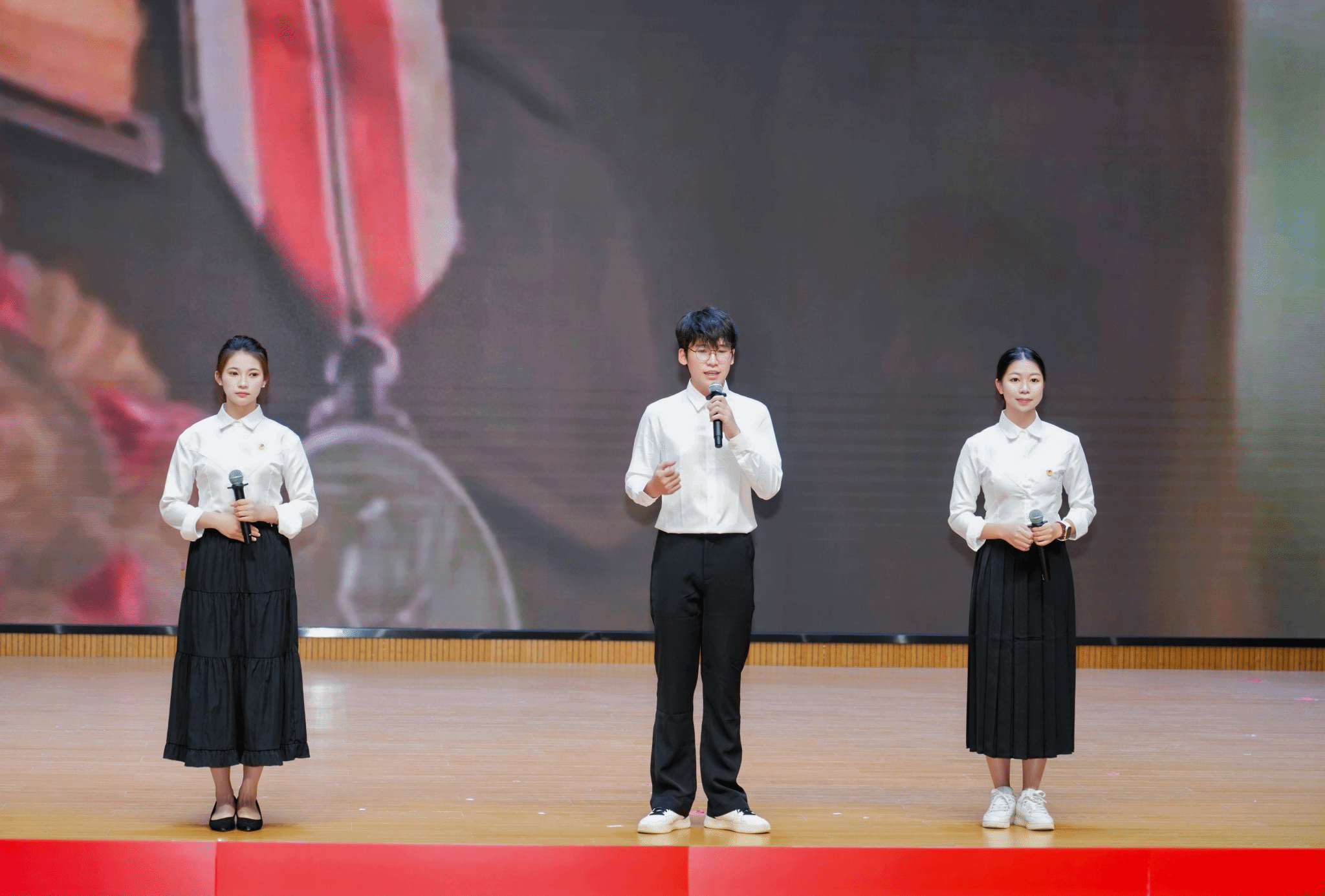 活动在深情激昂的朗诵《谁是最可爱的人》中拉开序幕。黄馨丽、梁华、韩雪如同学以饱满的情感、铿锵的语调,将现场师生带回抗美援朝的峥嵘岁月,那些为家国挺身而出的英雄形象,在朗诵声中愈发清晰。随着语句时而激昂、时而温婉的流转,全场师生仿佛身临其境,不少人眼中泛起泪光,现场掌声此起彼伏,爱国情怀在这一刻悄然升温。