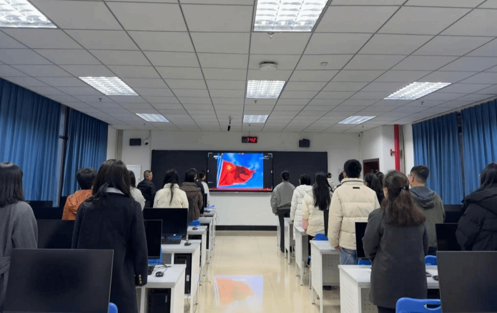 数字经济与管理学院 谢姗姗 报道 1月5日,数字经济与管理学院组织全院师生在室内开展升旗仪式,学院党总支副书记顾玉俊讲授国旗下的思政课,2025级大数据与会计2班文艺委员黄小婷担任主持。