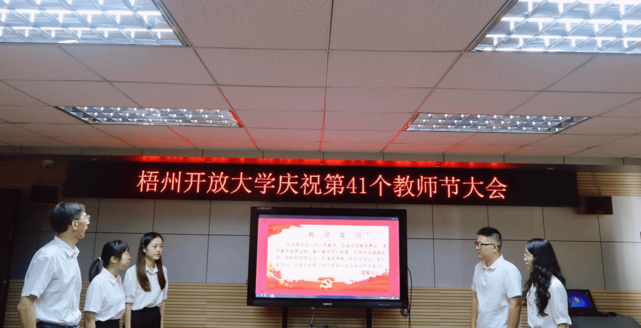 梧州开放大学全体教职工将以此次庆祝大会为契机,继续坚守教育初心,勇担育人使命,在推动开放教育高质量发展的道路上砥砺前行,为谱写教育强国建设华章贡献梧州开大力量。