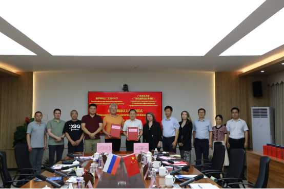 )与俄罗斯国立工艺美术大学在广西开放大学东宝校区举行合作洽谈会,双方就教育国际化合作办学达成共识,并签署了合作框架协议,共同开启了两校教育合作的新篇章。