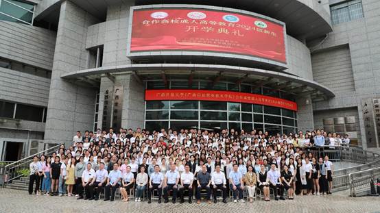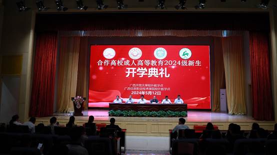 )合作高校成人高等教育2024级新生开学典礼在东宝校区一楼报告厅举行。广西师范大学、南宁师范大学、玉林师范学院、广西农业职业技术大学继续教育学院领导,四所合作高校2024级380余名新生代表在主会场参加现场典礼,其余2024级新生在各分会场参加典礼。开学典礼由继续教育学院副院长王国榜主持,采用“线上+线下”同步直播方式进行。