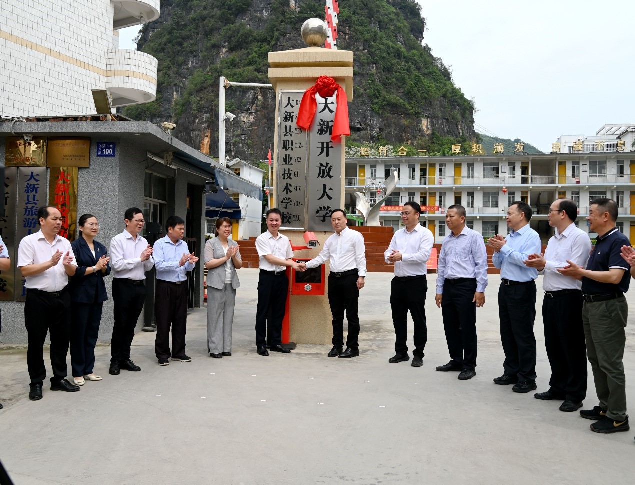 大新县委书记施展代表大新县委、县政府向广西开放大学表示感谢。他表示,此次校地合作协议的签约和大新开放大学的正式挂牌,是大新落实科教强县战略的关键举措,是实现校地优势互补,共同发展的具体行动,对大新培养高素质技能人才,加快高质量发展具有重要意义。他要求,大新开放大学要用好揭牌成立的契机,加强教学名师和业务管理骨干引进培养,紧密对接地方产业布局,面向基层干部群众开展学历教育和技能培训,满足广大人民群众多元化的教育需要和企业的用工需求,努力办好高水平、有特色、人民满意的县域开放大学。全县各级各部门要全力支持大新开放大学的发展,推进人才链、教育链、产业链、创新链融合发展,提升大新开放大学对县域发展的支撑力和贡献度。